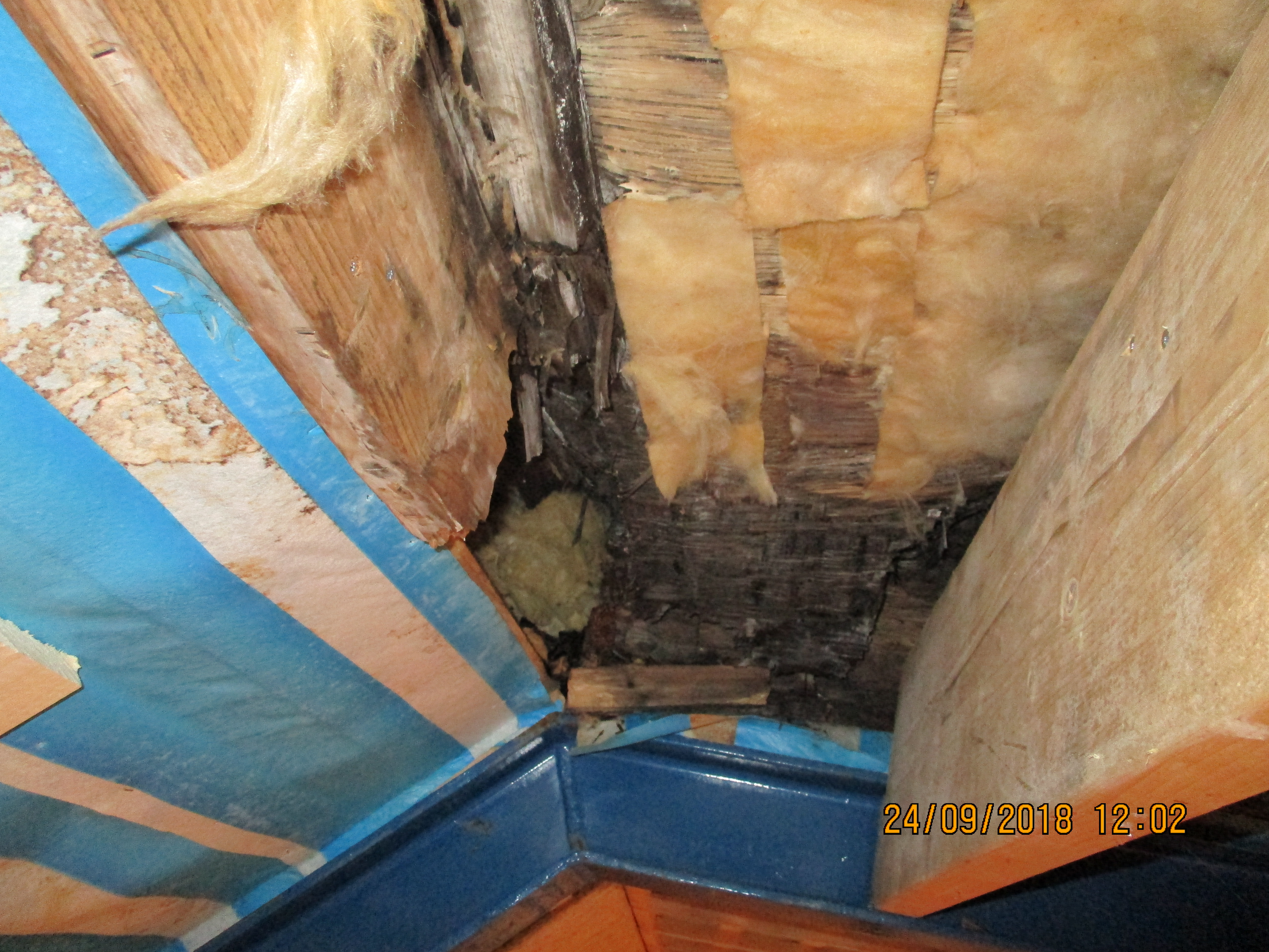 Det efterfølgende billede viser en tagkonstruktion, der er kraftigt opfugtet p.g.a. manglende ventilering af tagrum.